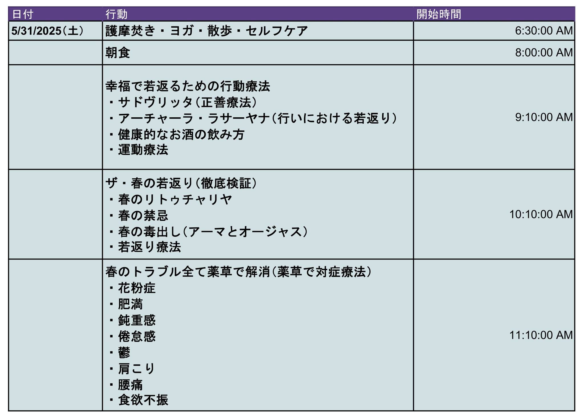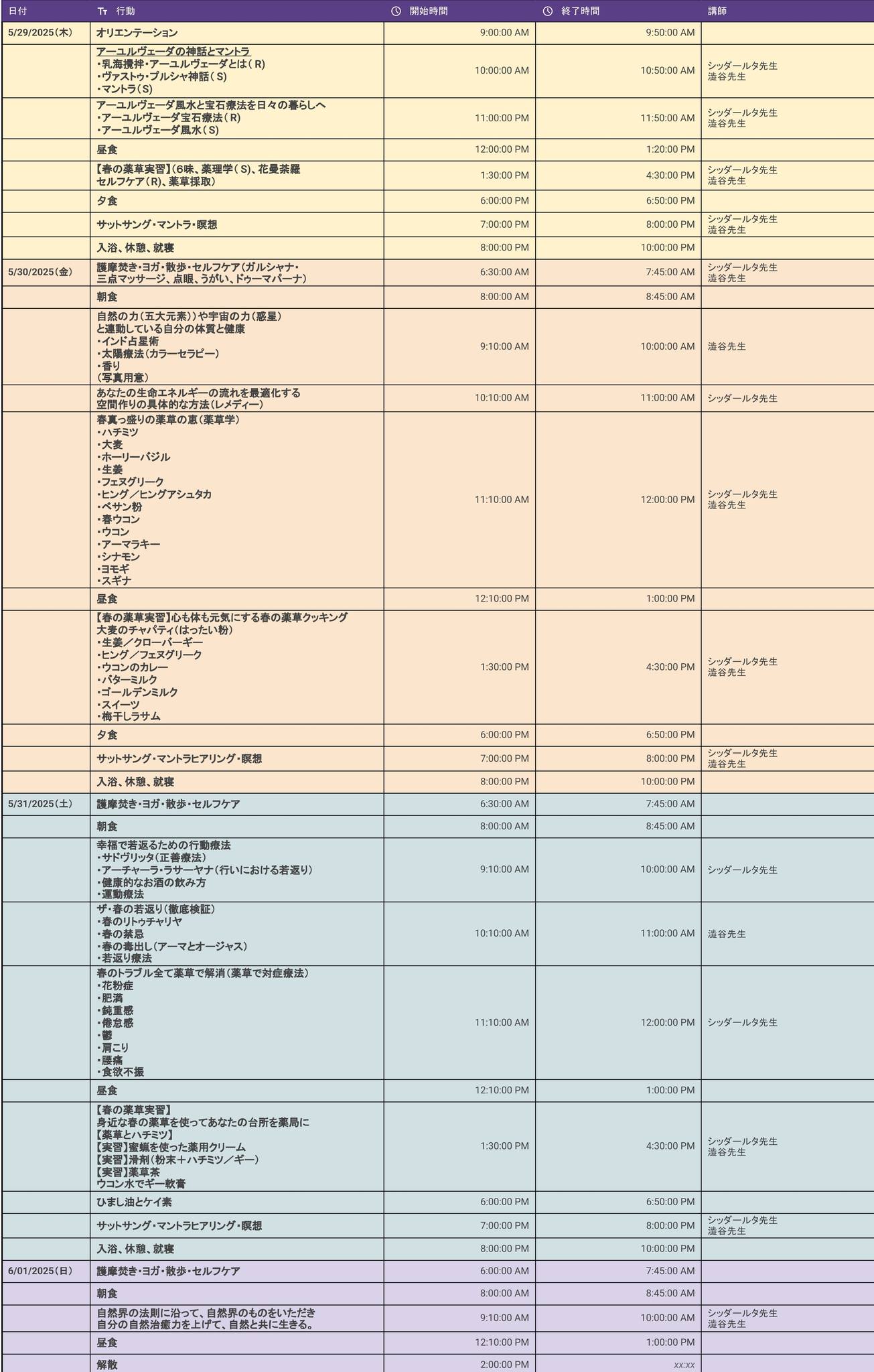 「究極のアーユルヴェーダ若返り春夏合宿part2」