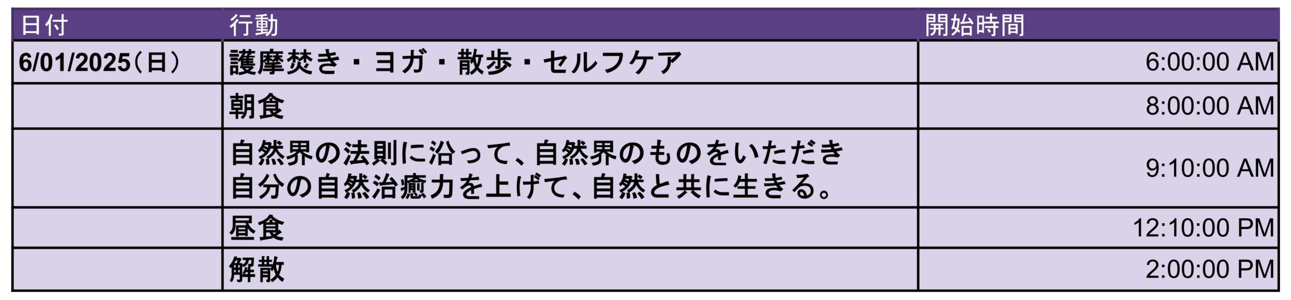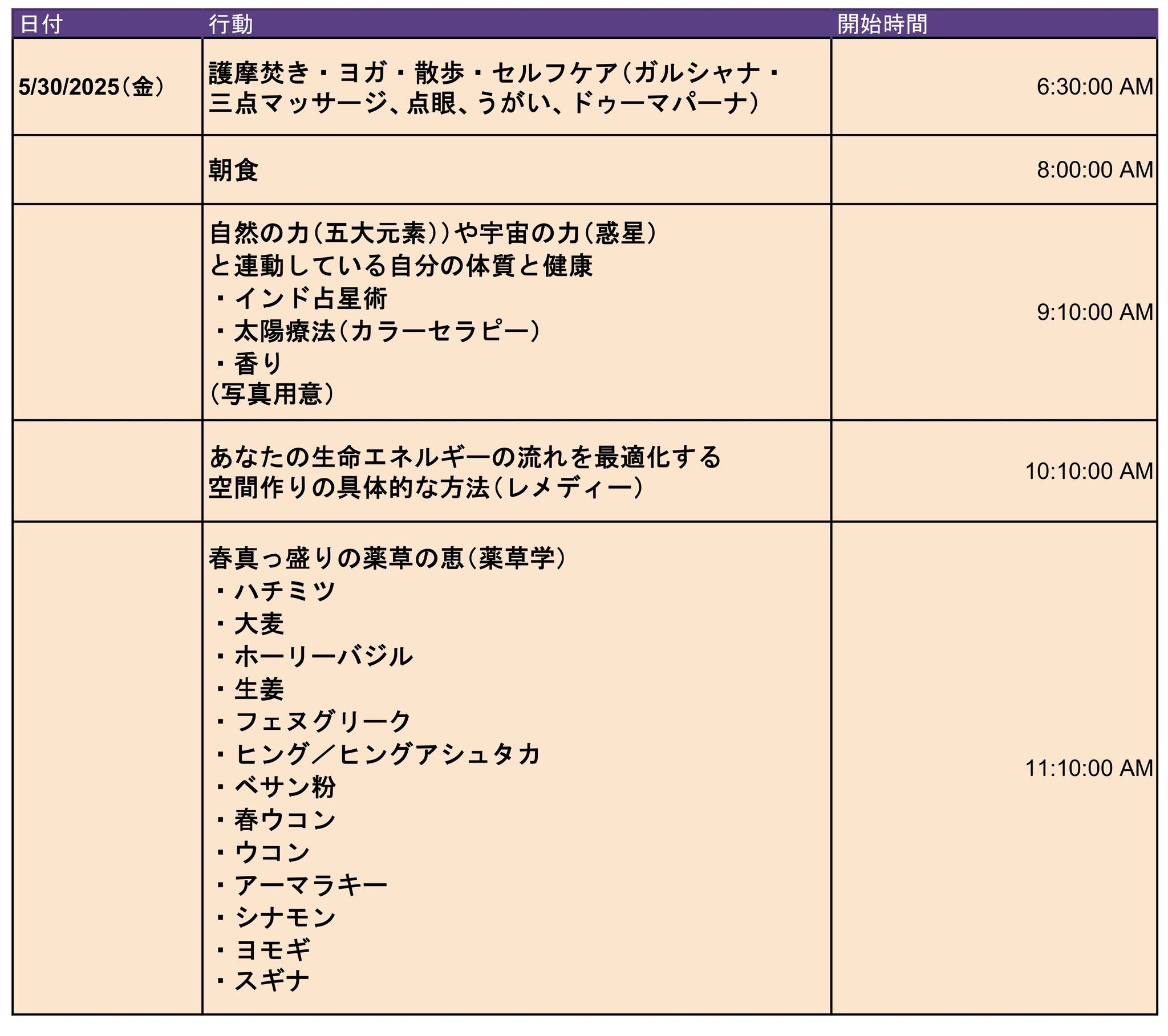 7:00~ 7:45 護摩だき、マントラ、祈り、セルフケア、ヨーガ