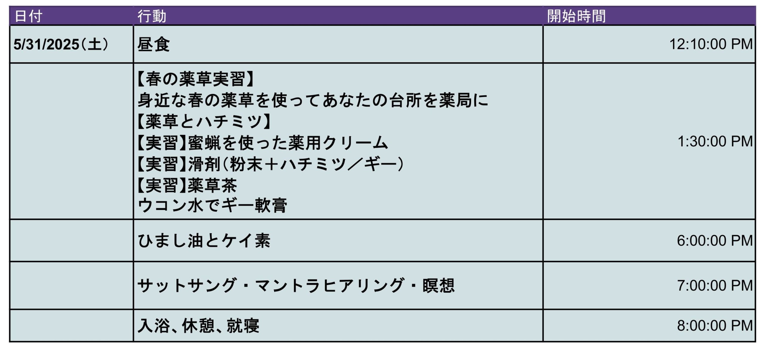 合宿では、毎日薬草ハーブをふんだんに使って